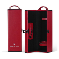 صندوق زجاجة نبيذ فردي من الجلد محمول مخصص عالي الجودة أزرق وأحمر مع سكين حصان بحري لتعبئة زجاجة النبيذ والشامبانيا